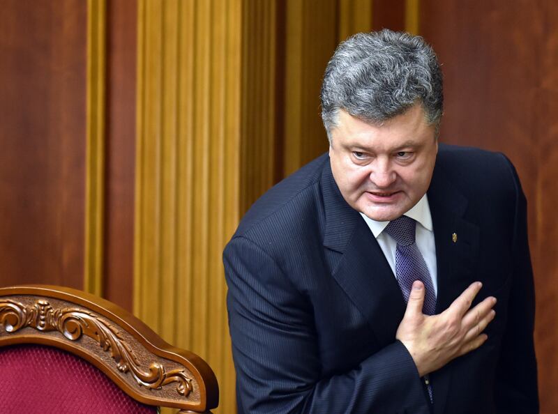 El presidente ucraniano, Petro Poroshenko, anuncia la entrada en vigor de un alto el fuego en el este y presenta su plan de paz para el arreglo del conflicto armado entre los insurgentes prorrusos y el Ejército de Kiev. | AFP (SERGEI SUPINSKY)