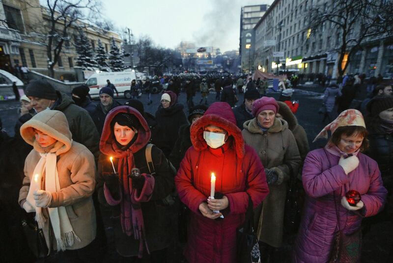 Una marcha ayer, en Kiev, en memoria de quienes murieron en los choques entre manifestantes y la Policía. | EFE (SERGEY DOLZHENKO)