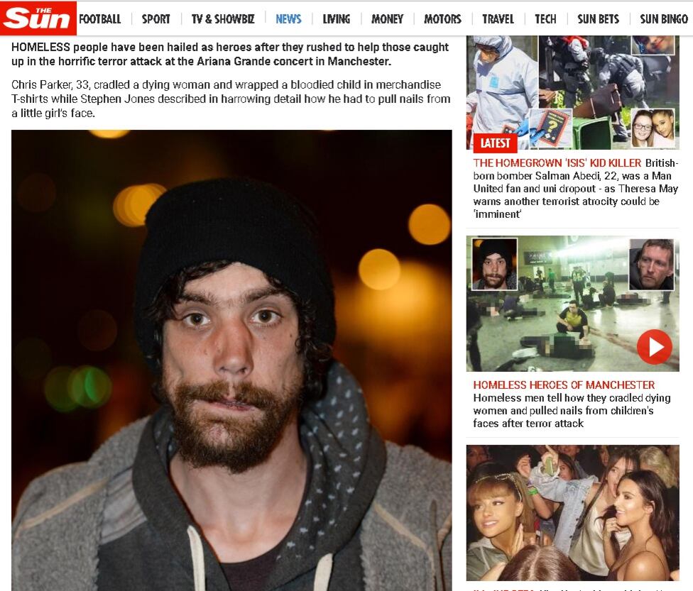 Chris Parker estaba en el vestíbulo del Manchester Arena la noche de este lunes pidiendo limosna, una práctica usual en él cuando hay conciertos grandes. Sin embargo, ayer fue diferente.