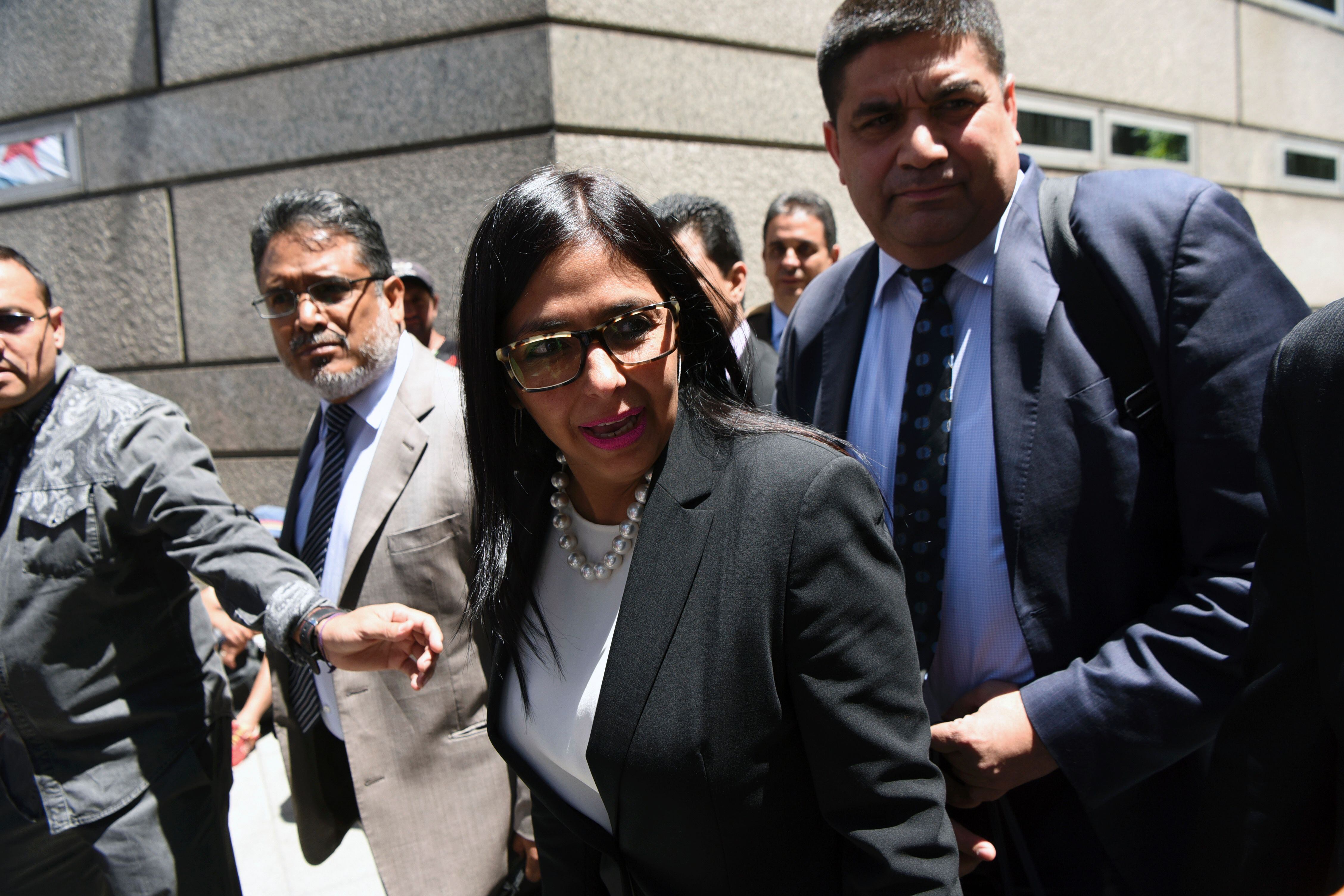 La jefa de la diplomacia venezolana, Delcy Rodríguez, llegó al Palacio San Martín de Buenos Aires, entre algunos empujones de policías antimotines y la prensa, junto con su par boliviano David Choquehuanca.