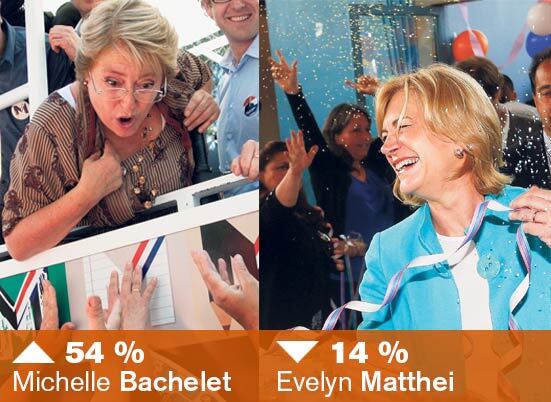 Las encuestas. La candidata favorita es Bachelet, quien según el Centro de Estudios Públicos, una encuestadora muy respetada, obtendría un 54% de los sufragios, seguida por Matthei, con 14%.
