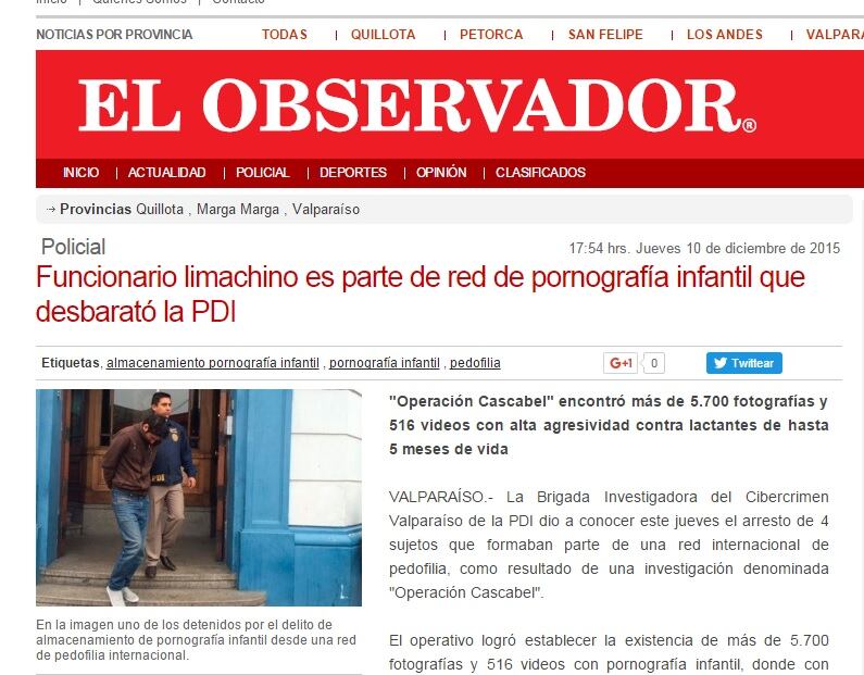 Benni destacó que fue difícil dar con los sujetos debido a que tenían un avanzado conocimiento de computación. "Además estos usuarios participaban en una red internacional de pornografía" , añadió.