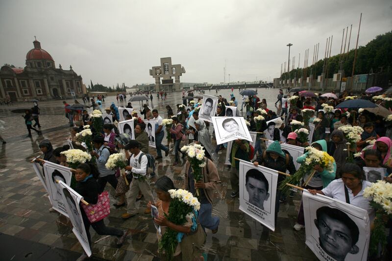 Los familiares de los 43 estudiantes desaparecidos desde el 26 de setiembre en Iguala asistieron ayer con las imágenes de sus seres queridos a una misa en la basílica de Guadalupe en Ciudad de México. | AP (Marco Ugarte)