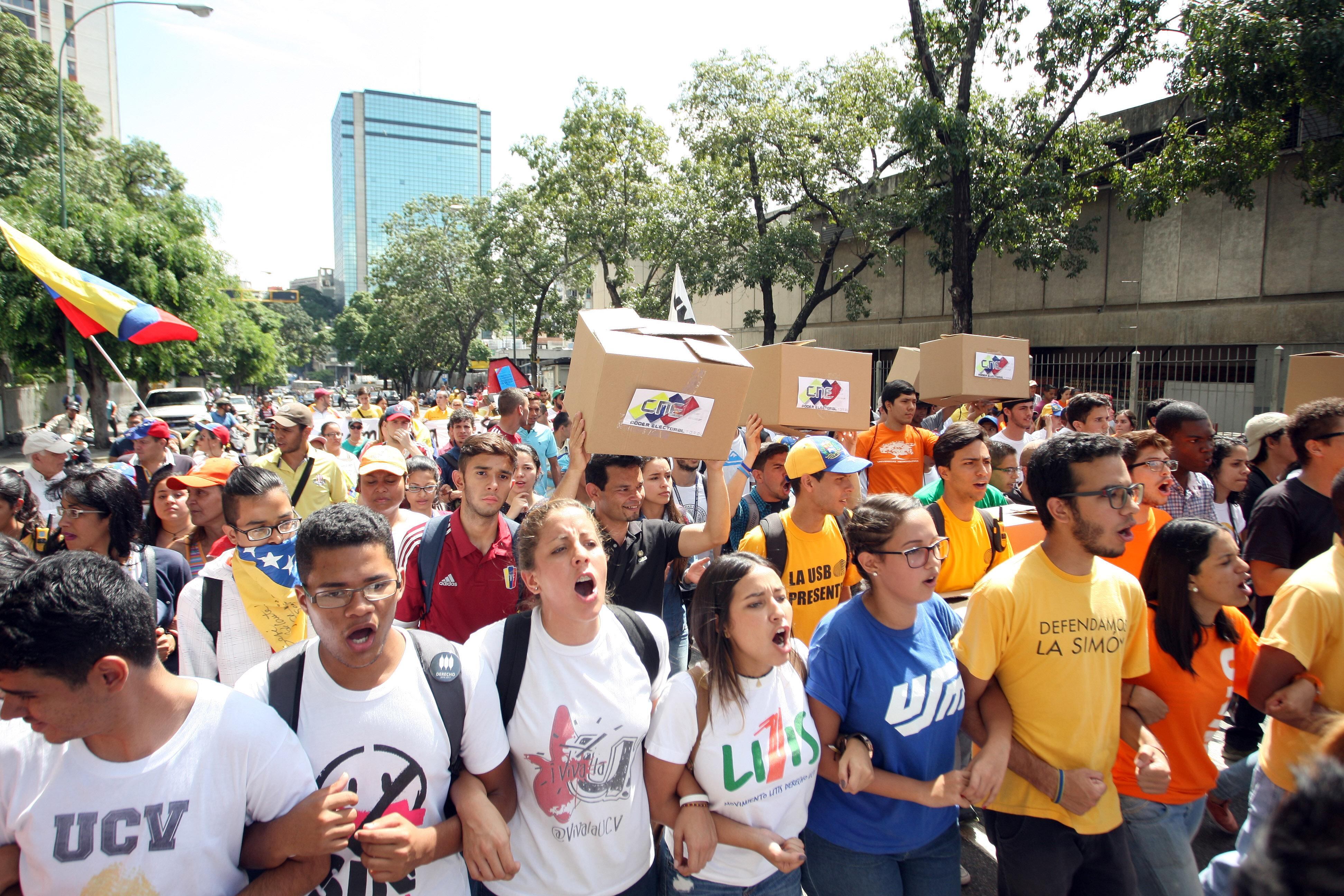 Estudiantes venezolanos protestaron este jueves por la suspensión del referendo revocatorio contra el presidente Nicolás Maduro. (El Nacional)