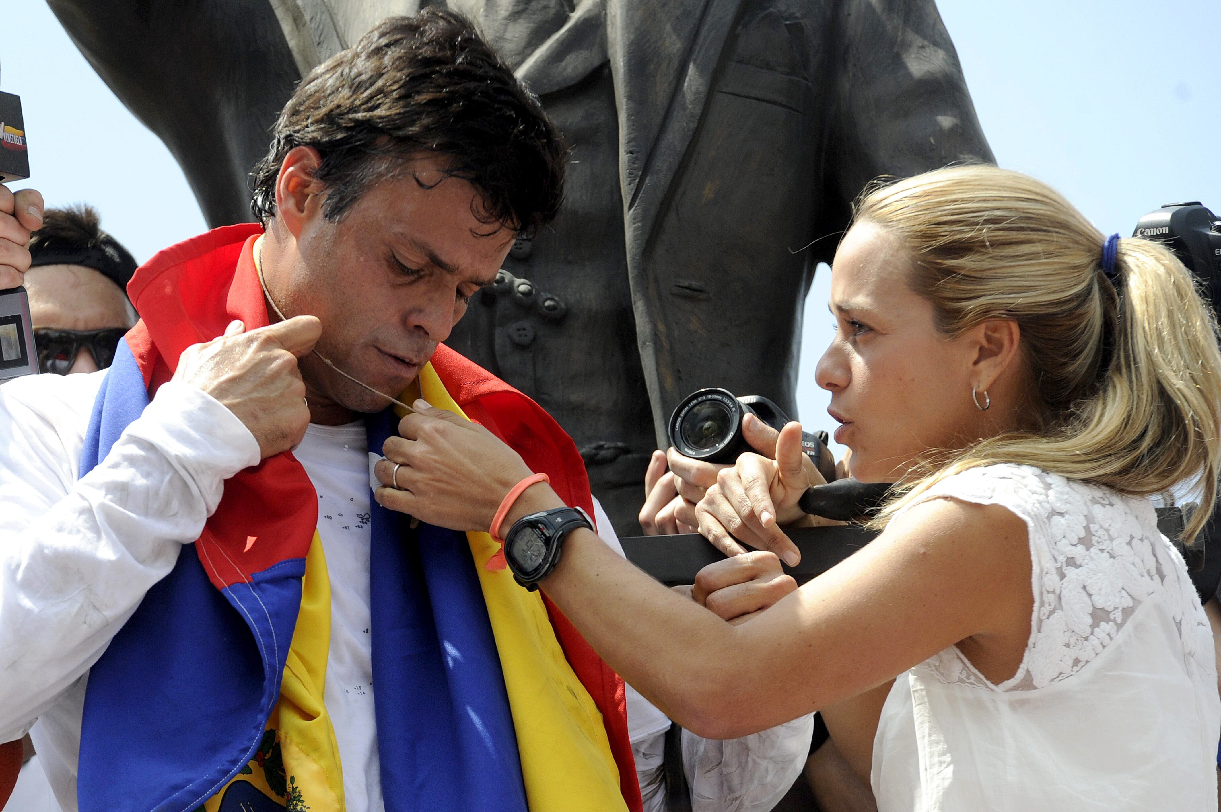 Tintori se mantuvo al lado de López durante la marcha del martes en donde fue arrestado. (AFP.)