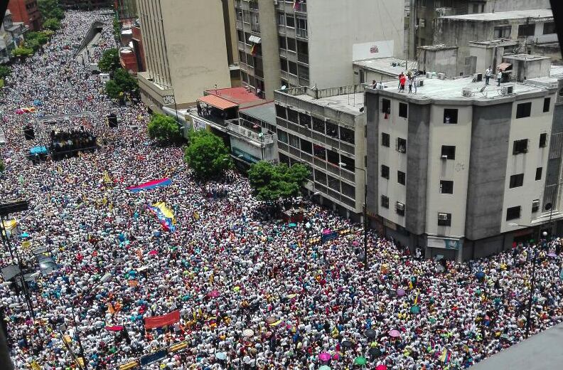 Miles de personas acudieron este jueves a la marcha convocada por la oposición para exigir el referendo revocatorio contra el presidente Nicolás Maduro. (AFP)
