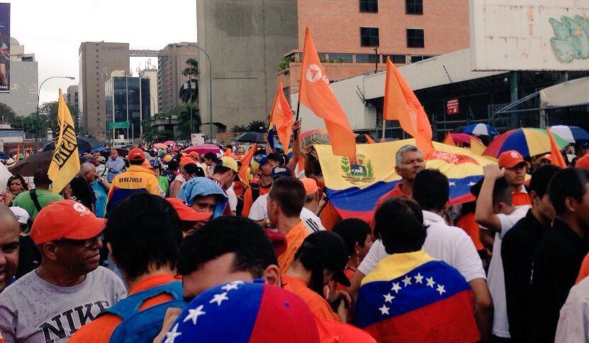 La movilización que se inició a las 10:00 a. m. hora local en el centro de la capital venezolana fue convocada hace dos día por la alianza opositora Mesa de la Unidad Democrática (MUD) como una medida de presión callejera para que el Consejo Nacional Electoral (CNE) cumpla con celeridad el cronograma establecido para el revocatorio.