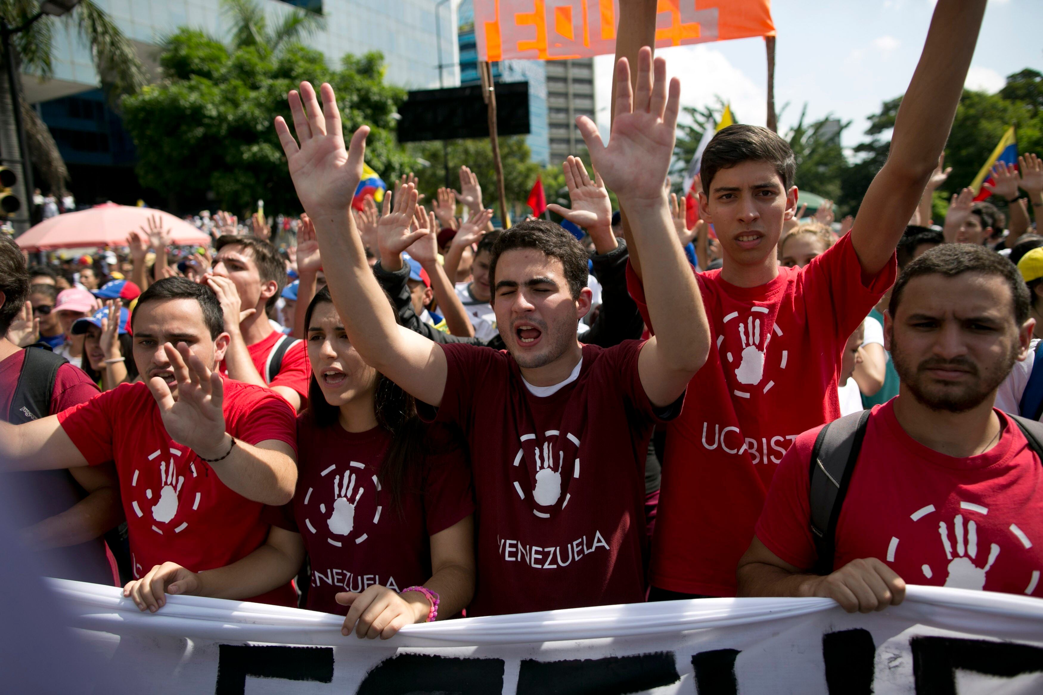 Al grito de "¡Democracia sí, dictadura no!" y "¡Queremos contarnos ya!", los manifestantes se congregaron en una autopista de la capital para exigir la "restitución del hilo constitucional" y la realización del referendo.