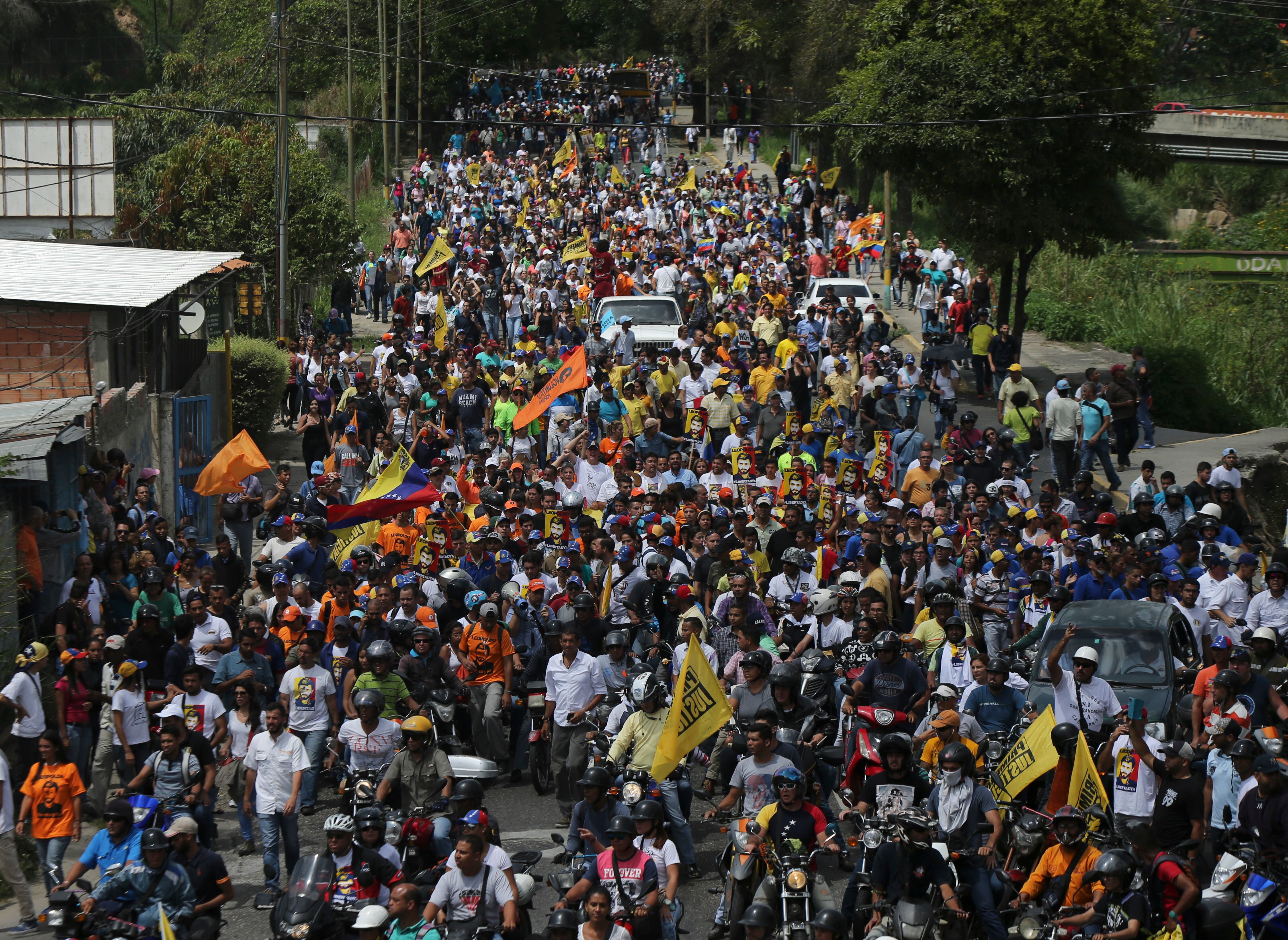 Opositores al presidente Nicolás Maduro marchan hacia la prisión militar de Ramo Verde en Los Teques, en las afueras de Caracas, Venezuela. (AP)