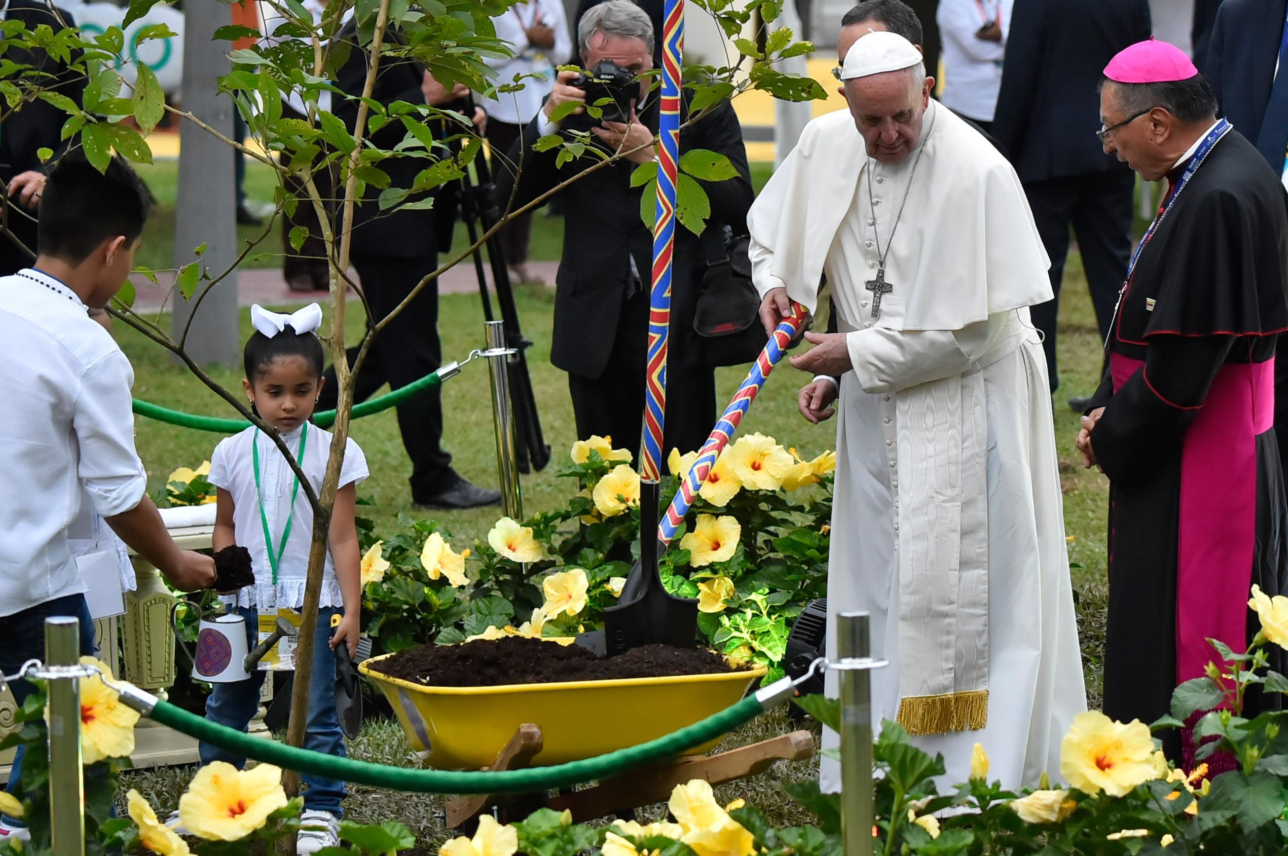 Previo a su regreso a Bogotá, el jefe del Vaticano ayudó a sembrar un árbol como símbolo de la reconciliación y en sintonía con la defensa que ha hecho de la protección del medio ambiente.