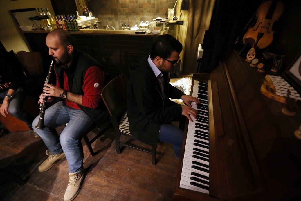 Músicos sirios se presentan en un bar y restaurante de la ciudad de Alepo. (AFP)