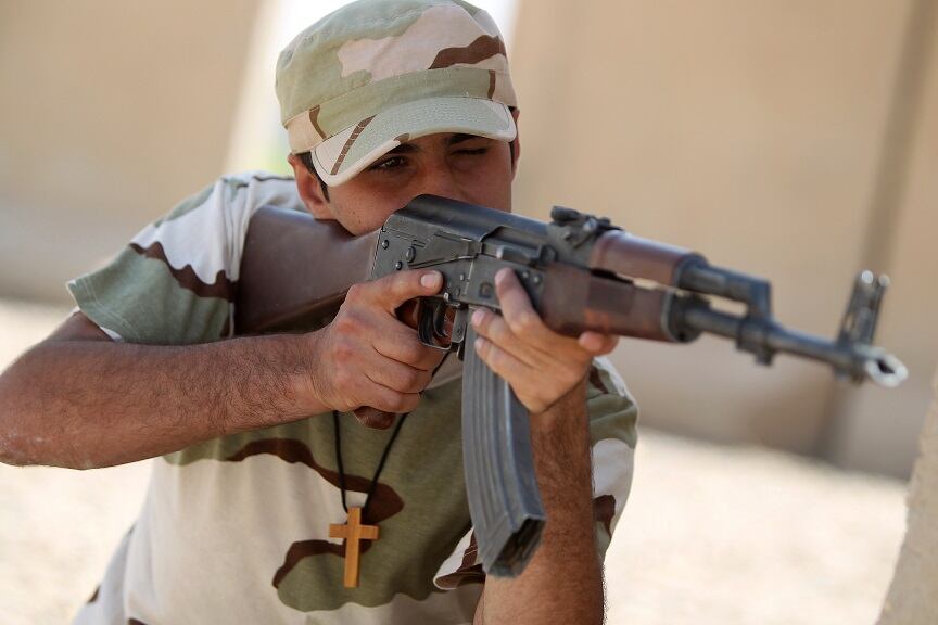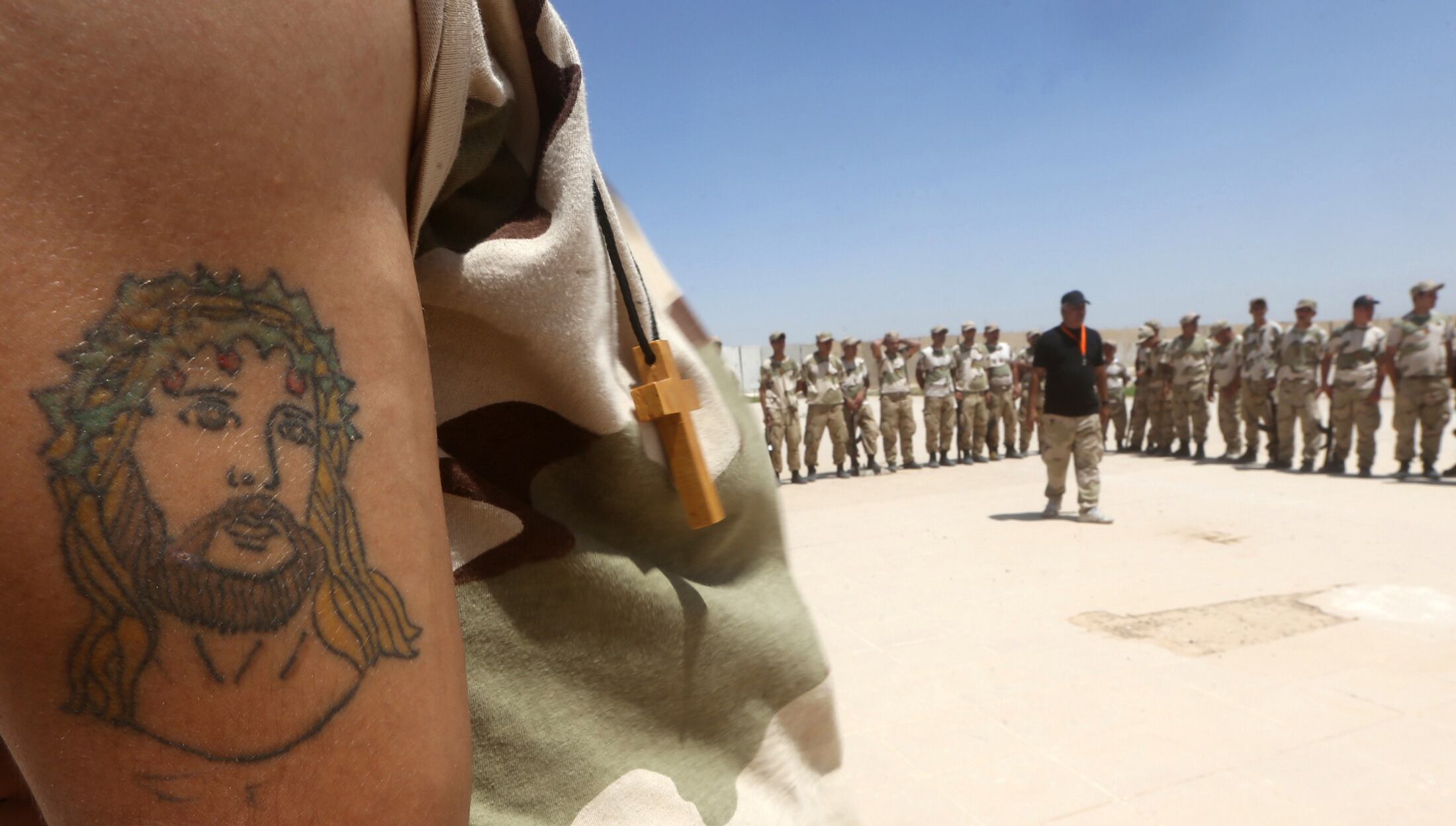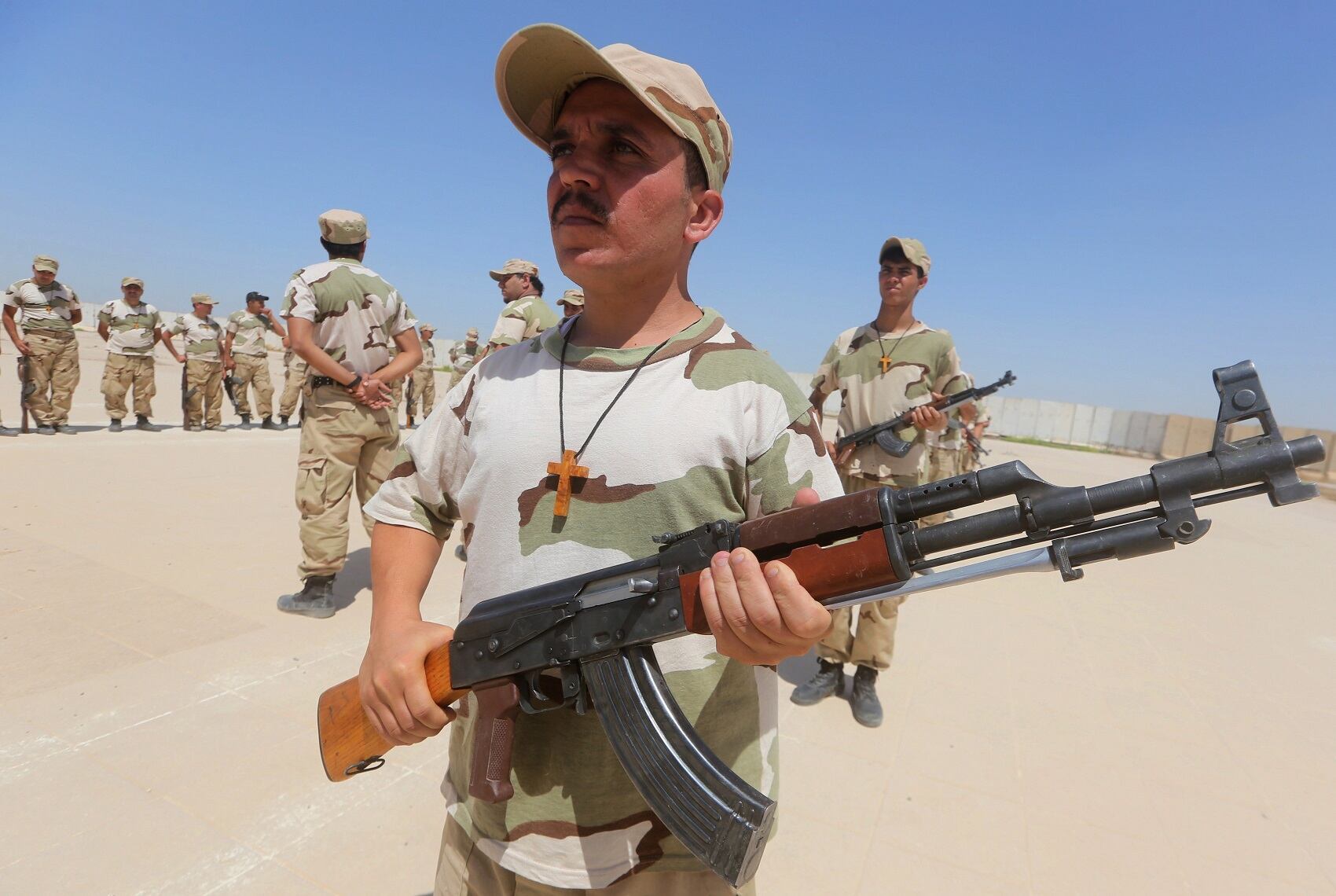 Con cruces de madera en el cuello y otros símbolos religiosos tatuados en los brazos, varias docenas de cristianos iraquíes se entrenan en milicias populares para intentar recuperar sus hogares, hoy en manos del grupo yihadista Estado Islámico (EI).