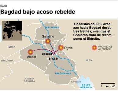Los yihadistas avanzaban ayer desde tres puntos hacia Bagdad tras hacerse fuertes en los territorios conquistados en el norte, prosiguiendo una ofensiva fulgurante salpicada de ejecuciones sumarias, según la ONU.