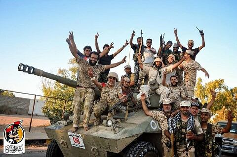 Varias cadenas de televisión libias difundieron imágenes de soldados en las zonas "liberadas" el miércoles, principalmente del Centro Uagadugú, donde posaban para los fotógrafos, portando la bandera libia y haciendo el signo de la victoria.