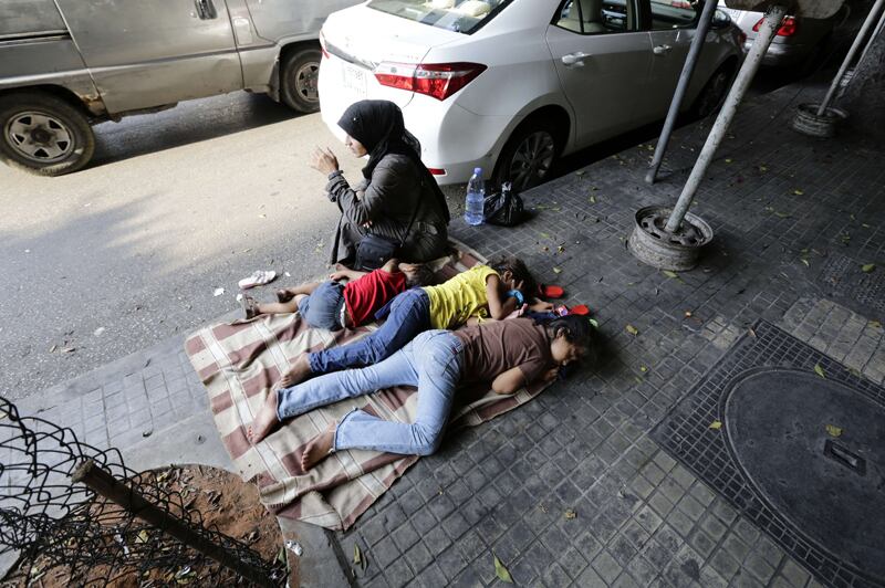 Esta madre y sus hijas sirias yacen en una acera de la calle Hamra en Beirut, Líbano. Este pequeño país se ha convertido en uno de los mayores receptores de refugiados. | AFP (ANWAR AMRO)