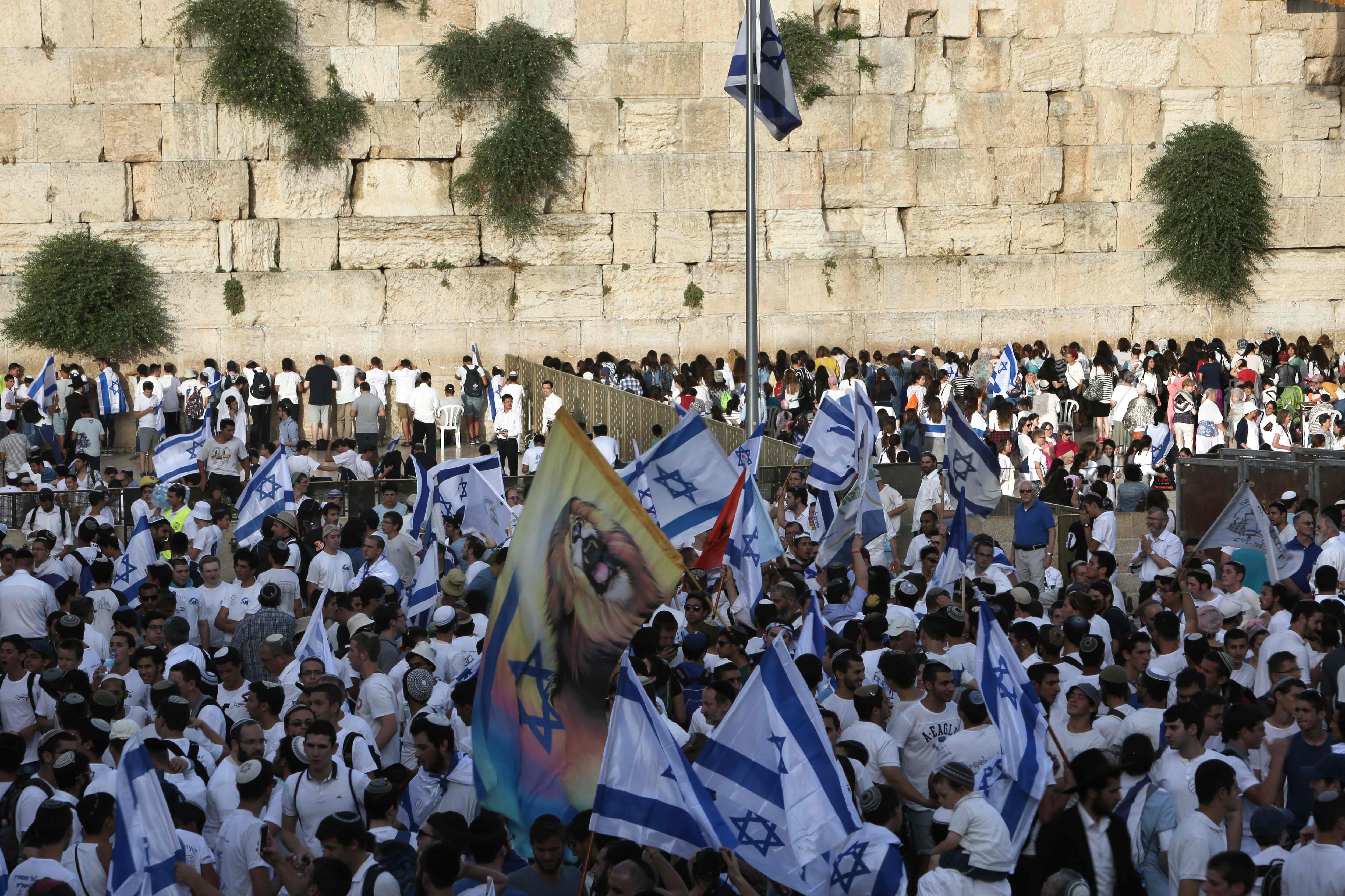 Pequeños grupos de jóvenes judíos con banderas israelíes penetraron en el barrio musulmán gritando lemas nacionalistas. Algunos comerciantes cerraron sus tiendas por precaución, después que el año anterior se registraran disturbios.
