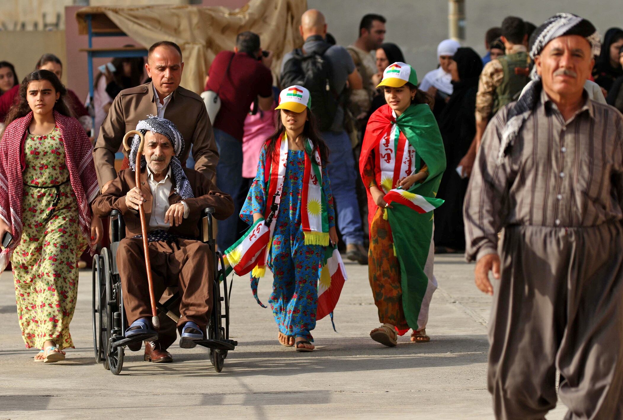 Los esfuerzos de Bagdad por posponer o anular la consulta fueron vanos, y los legisladores kurdos se apresuraron a aprobar la consulta y no aplazar lo que creen que por derecho les corresponde. El presidente kurdo, Masoud Barzani, dijo que no pospondría la votación sin una garantía de independencia de Bagdad, lo cual significa que esperaba que fuera el gobierno de Heider al Abadi quien les otorgara la independencia. Pude ver un pueblo en fiesta y entusiasmado, la vestimenta eran las banderas de su país y su orgullo, ser kurdo.