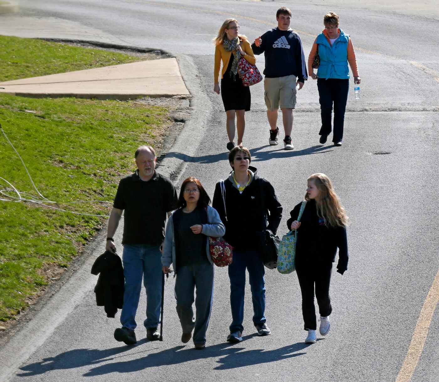 Estudiantes son escoltados mientras abandonan las instalaciones del colegio donde se produjo el apuñalamiento, el miércoles. (AP)
