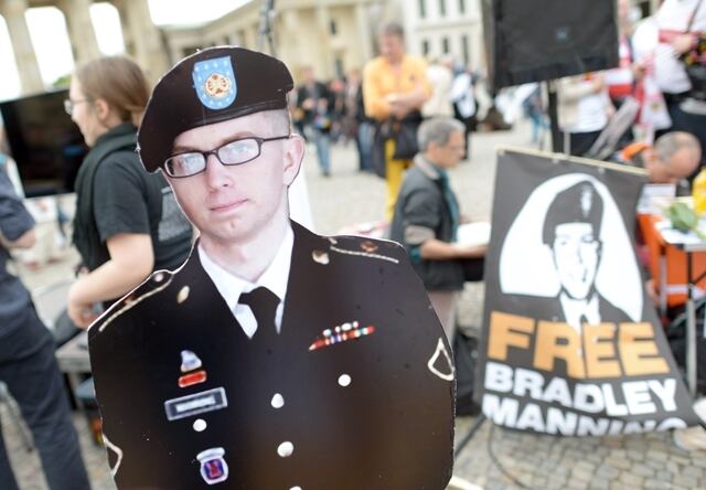 Manning, quien ya lleva tres años detenido, llegó a la corte mientras unas cuarenta personas manifestaban ante la base militar con pancartas que rezaban "Liberen a Bradley Manning" o "Tres años ya bastan".