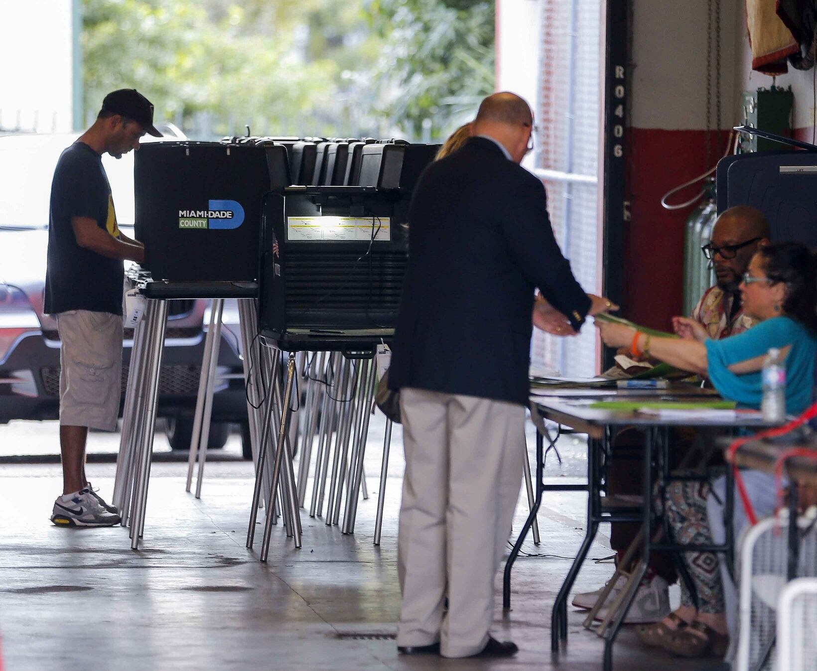 Varias personas votaron el martes en un colegio electoral situado en una estación de bomberos en Miami, Florida. (EFE)