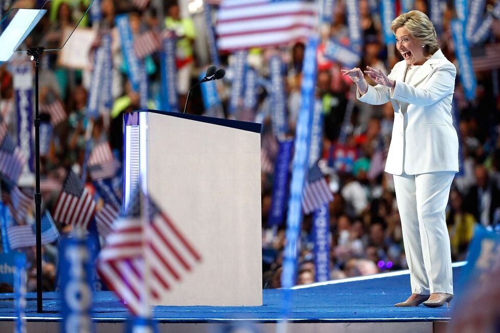 La exsecretaria de Estado subió al escenario en medio de un aplauso atronador de delegados que ondeaban banderas en la última noche de la Convención Nacional Demócrata, saboreando su postulación como la primera mujer en encabezar uno de los dos principales partidos del país.