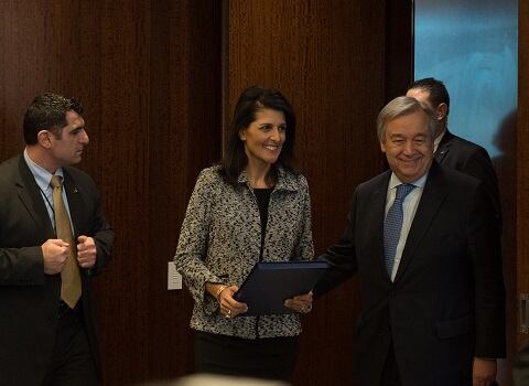 La exgobernadora del estado de Carolina del Sur hizo sus primeras declaraciones en la sede de la ONU antes de presentar sus credenciales diplomáticas al secretario general de la organización, el portugués Antonio Guterres.