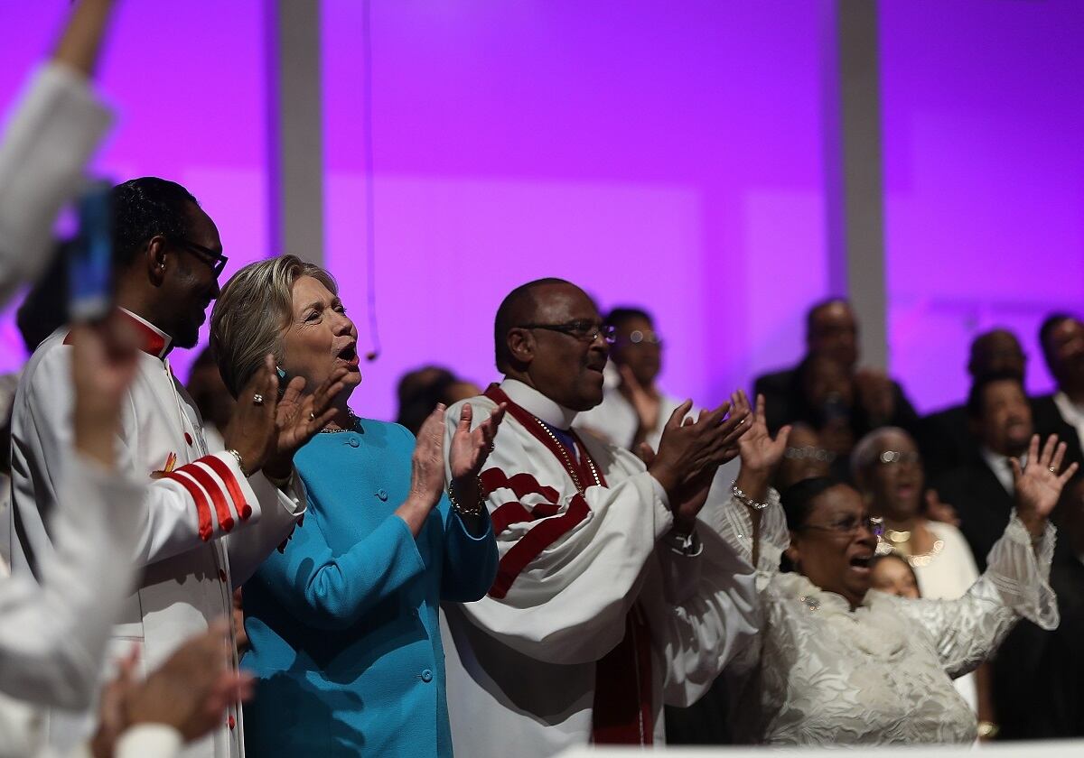 La candidata presidencial demócrata, Hillary Clinton, participó el domingo en un oficio religioso en Filadelfia, Pensilvania. Este es uno de los estados claves en la lucha por la carrera hacia la Casa Blanca. (AFP)