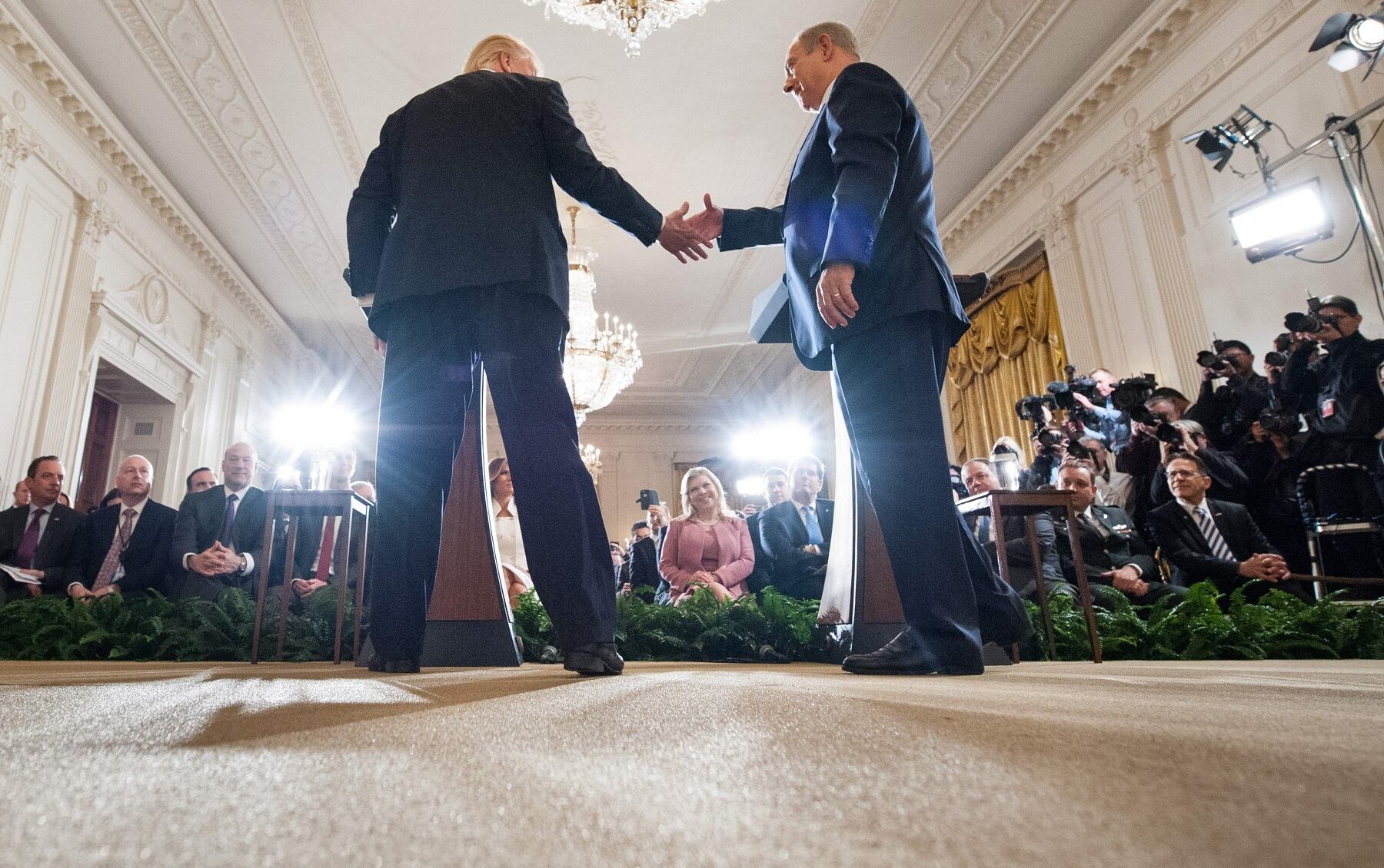 En una conferencia de prensa conjunta en la Casa Blanca con el primer ministro israelí, Benjamín Netanyahu, Trump dijo que su gobierno podría incluso aceptar una solución con un único Estado si ambas partes se ponen de acuerdo.