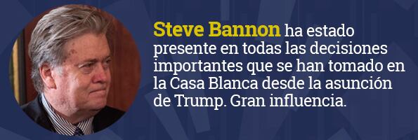 Todas las decisiones importantes que se han tomado en la Casa Blanca desde la asunción de Trump involucraron a Bannon, un ejecutivo de medios de comunicación que pasó a ser el principal asesor político de Trump tras una reestructuración de su campaña llevada a cabo en agosto y que rápidamente le dio un intenso fervor anti-establishment.