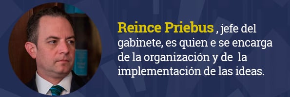 Si Bannon es un alma gemela de Trump en el plano político, Priebus es el que se encarga de la organización y la implementación de las ideas. Cuando Trump firma sus órdenes ejecutivas, casi siempre es Priebus quien le pasa los documentos.