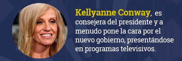 Cuando el secretario de prensa de la Casa Blanca, Sean Spicer, sostuvo que la asunción de Trump había sido vista "por la mayor audiencia jamás registrada en una inauguración, sin dudas" , Conway lo defendió en el programa Meet the Press de NBC, diciendo que había ofrecido "hechos alternativos".