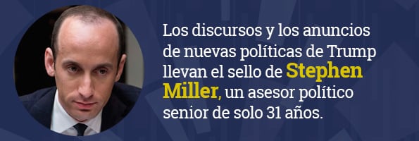 Los discursos y los anuncios de nuevas políticas de Trump también llevan el sello de Miller, un asesor político senior de solo 31 años que en el pasado trabajó con el senador Jeff Sessions, llamado a ser secretario de Justicia.