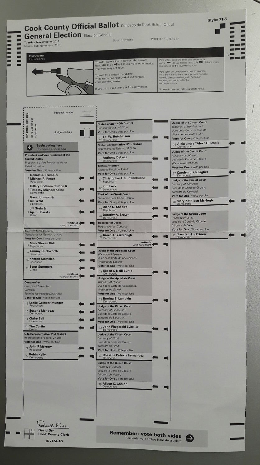 Si quería participar en los comicios del 8 de noviembre, debía solicitar la papeleta para votar en ausencia, desde el extranjero. Así lo realizó ante el condado de Cook, que le hizo llegar un instructivo de ocho puntos, entre ellos el sitio de Internet al que debía acceder para cumplir su deber cívico.