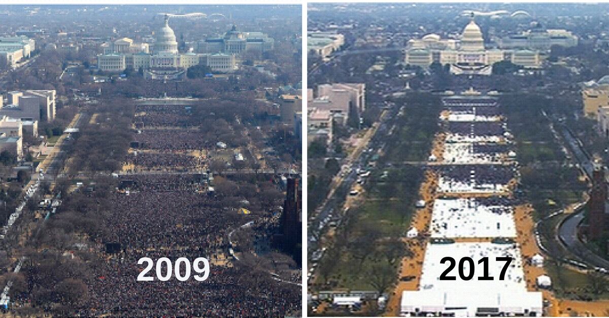 Las actividades de la toma de posesión finalizaron con el desfile de la investidura. A lo largo del desfile hubo multitudes de menor tamaño y tribunas semivacías.