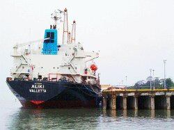 La embarcación Aliki, con bandera de Malta, tocó fondo frente al muelle de Moín, en Limón. Allí permanecerá anclada hasta tanto se repare el daño que tiene en la parte trasera, conocida como popa. Anclada. | MARVIN CARVAJAL /PARALA NACIÓN