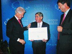 Arias terminó ayer su gira por los Estados Unidos con un rápido saludo al exmandatario Bill Clinton, quien se encontraba en Nueva York en la reunión anual de la Fundación Clinton Global Iniciative, (un grupo dedicado al estudio de problemas globales).