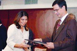El Tribunal Supremo de Elecciones (TSE) entregó ayer a las 5:30 p. m. el "diploma" de presidente para el período 2006-2010 al mandatario electo Óscar Arias.