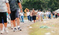 Así, en las primeras horas del domingo los romeros caminaron sin mayor protección.