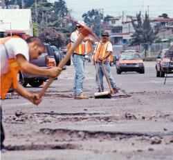 Trabajos de bacheo en múltiples vías