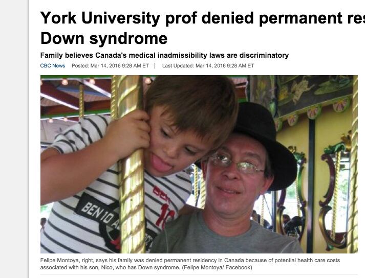 El matrimonio afirmó en la radiotelevisión pública canadiense, CBC, que las autoridades migratorias canadienses les negaron su petición de residencia permanente porque su hijo Nico, de 13 años de edad, tiene el síndrome de Down.