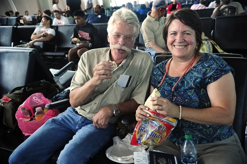 No todo es comprar. En un recorrido de La Nación por las puertas de abordaje del Juan Santamaría, este medio se topó con John y Elizabeth Dugger. Ellos prefirieron llevar unas tortillas antes que comprar en alguno de los restaurantes.