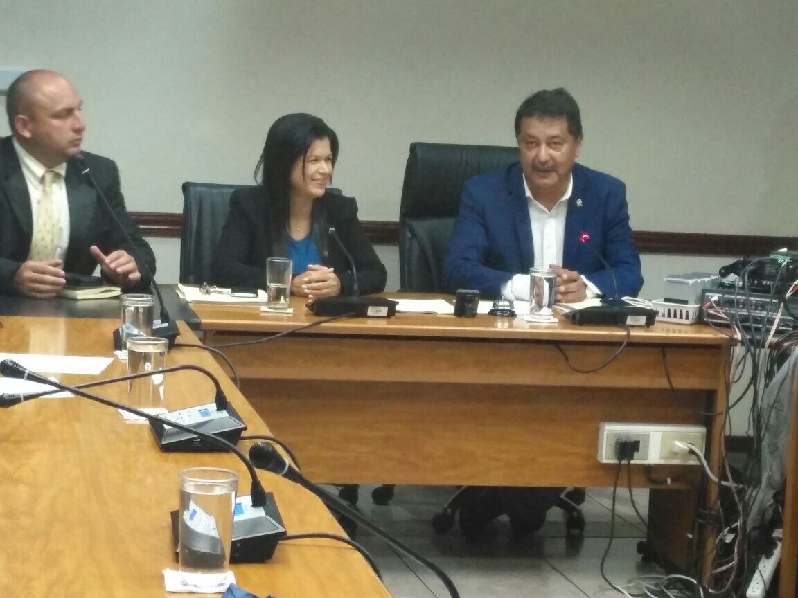 El diputado Marco Redondo (der.), del PAC, señala a Emilia Molina (centro) como una de las principales negociadoras de los acuerdos 'a espaldas' del resto de la fracción. Con ellos, Franklin Corella (izq.). (Rafael Murillo.)