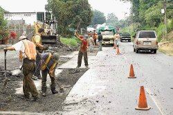 Una cuadrilla cumple labores de bacheo en la carretera entre Río Segundo de Alajuela y San Joaquín de Flores, Heredia. | ALLEN CAMPOS PARA LN