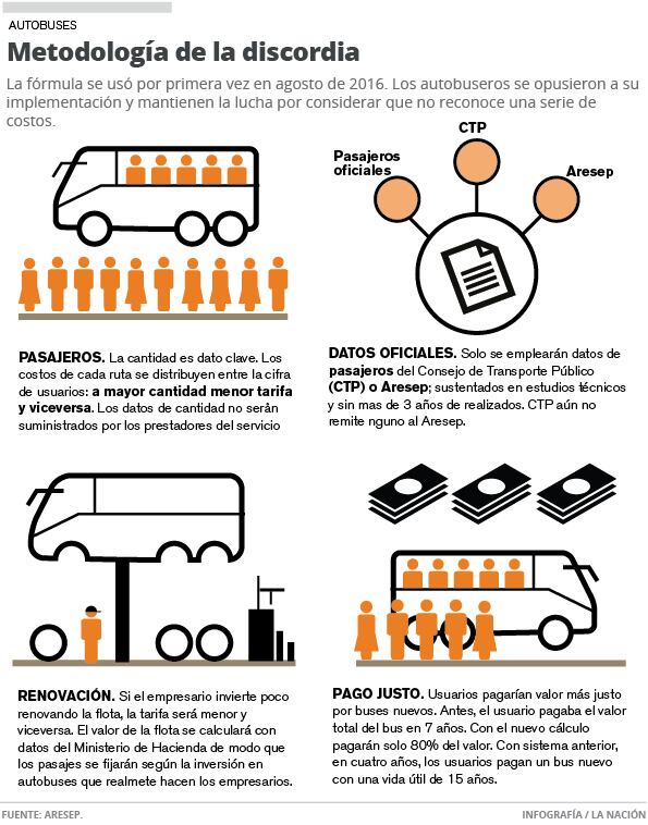 El análisis de la fórmula se realizó por encargo de la Cámara Nacional de Transportes (Canatrans) a inicios de este año. Desde entonces, esa organización lo ha presentado a distintas autoridades de Gobierno como base para solicitar la anulación del instrumento aprobado en febrero de 2016 e implementado desde agosto siguiente.