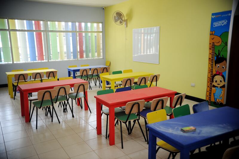 Todo está listo: sillas, mesas, pizarras, crayones, plastilina, libros... pero faltan los niños.