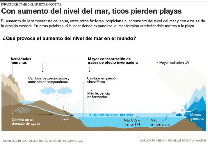 Causas. Omar Lizano, oceanógrafo de la Universidad de Costa Rica, explicó que las razones del fenómeno son el aumento de la temperatura y del nivel del mar, la aceleración del viento y el incremento en la altura de las olas.