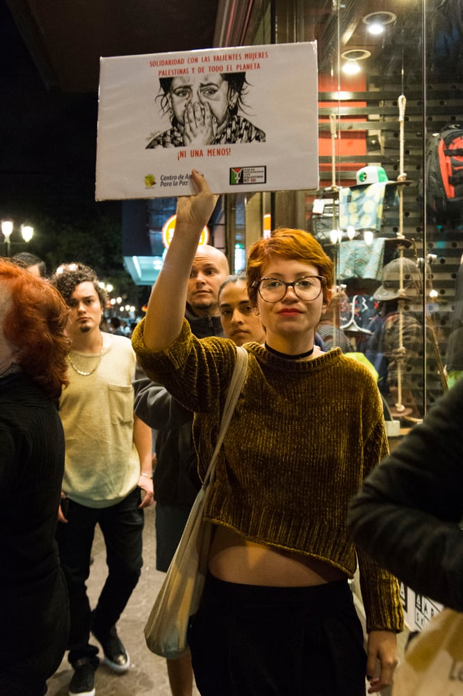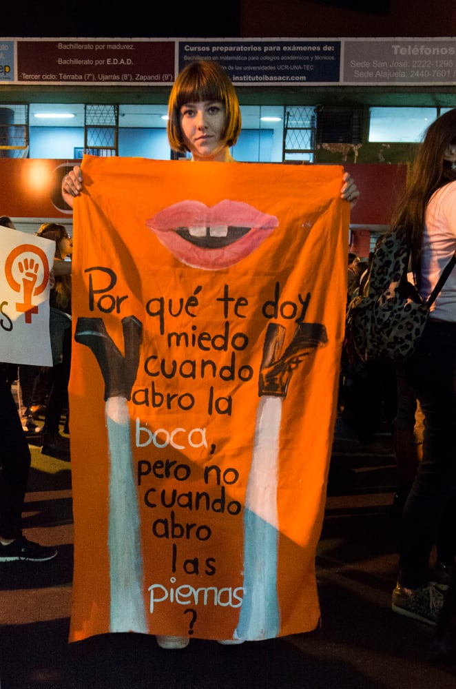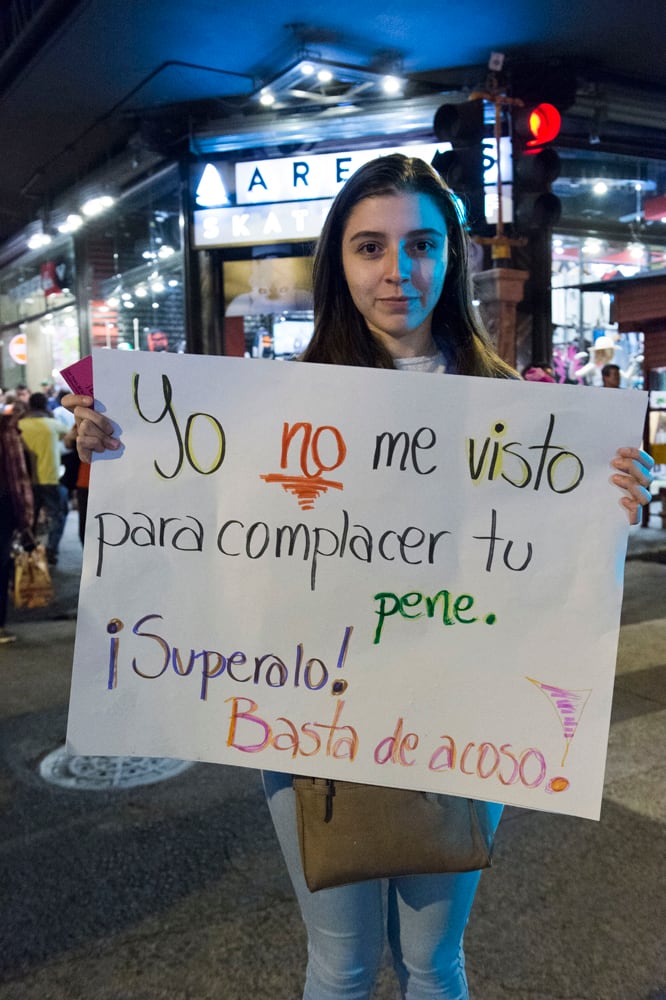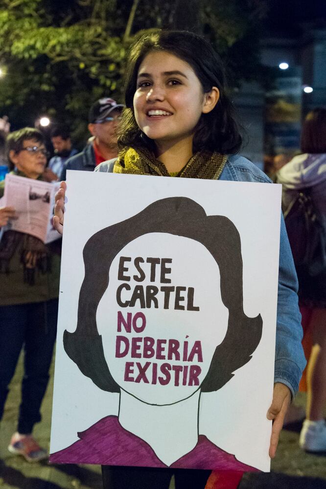 Celeste Carballo Monge, 22 años. “Los motivos (para marchar) son muchos: todas las muertes, todos los embarazos no deseados por violaciones, todo el drama que hace la iglesia y la gente, los asaltos a mujeres, violaciones, los piropos... O sea, es demasiado cansado todos los días. Son demasiadas cosas”.