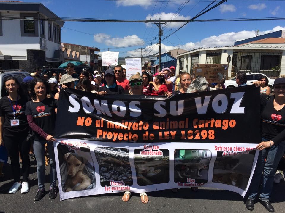 Ante centenares de personas que marcharon clamando a los diputados la aprobación del proyecto de ley que sanciona el maltrato animal, el alcalde de Cartago, Rolando Rodríguez, anunció que la Municipalidad destinará un terreno para construir un albergue para perros callejeros.