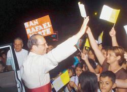 Visiblemente cansado pues apenas el lunes por la noche regresó de Roma, Loría ignoró el reclamo físico, y se mostró muy satisfecho de ser hoy uno más de los 356.894 vecinos de la diócesis de San Isidro de El General.