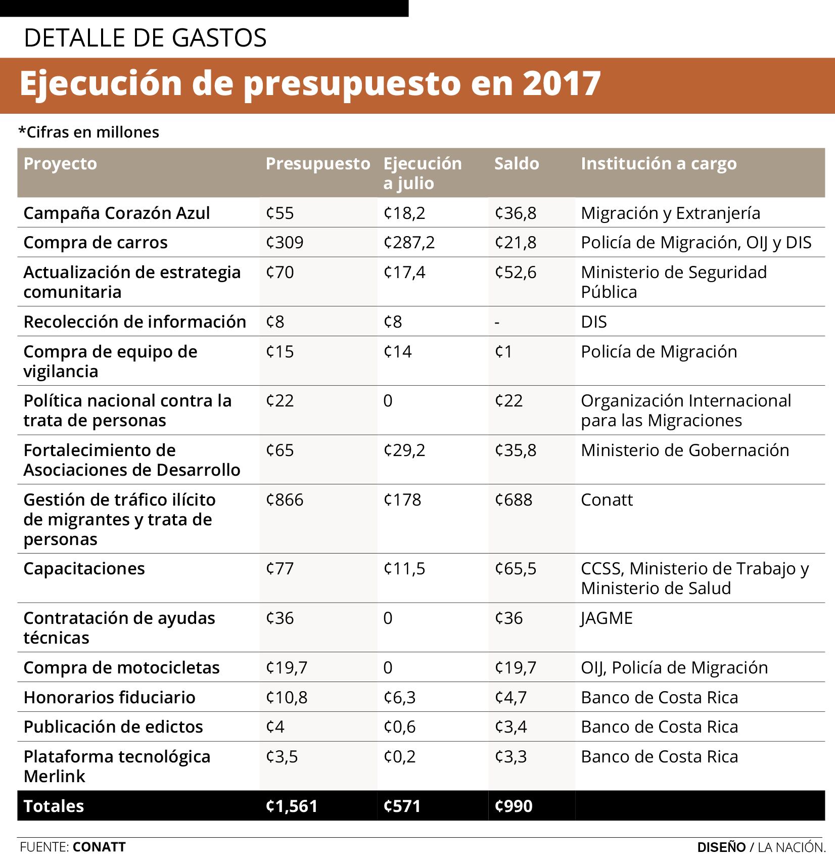Por no ejecutar esos recursos, añadió Chaves, ahora solo se puedan usar en compras de activos como instalaciones físicas, equipo de cómputo y carros, pero no en programas de prevención, información o asistencia a víctimas de trata.